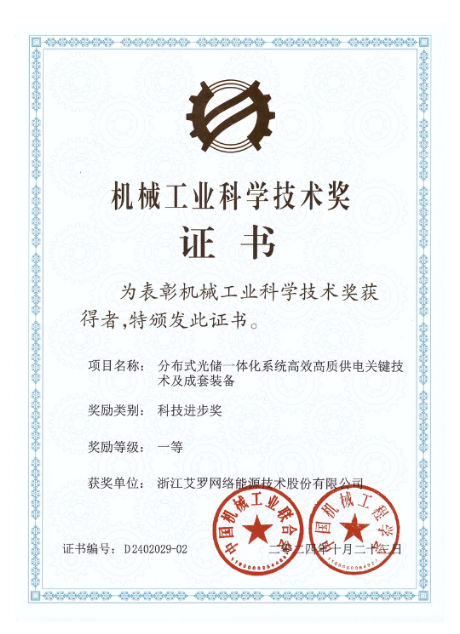 智能光储系统荣获“浙江省科学技术进步奖”一等奖